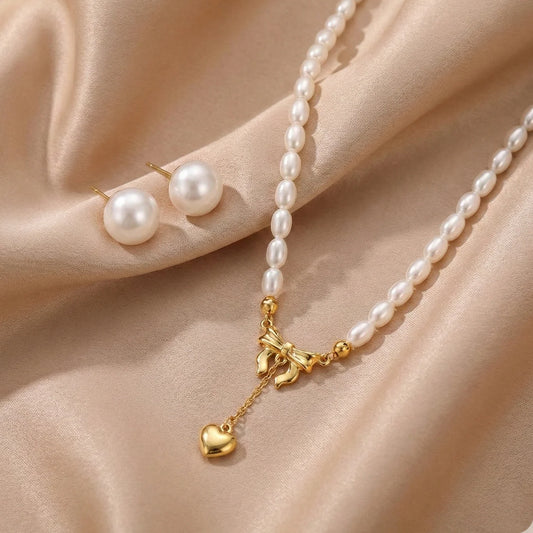 Aurelia Pearl - Luksuzni set ogrlice in uhanov s biseri (Kirurško jeklo 316L - Pozlačeno z 14K zlatom)