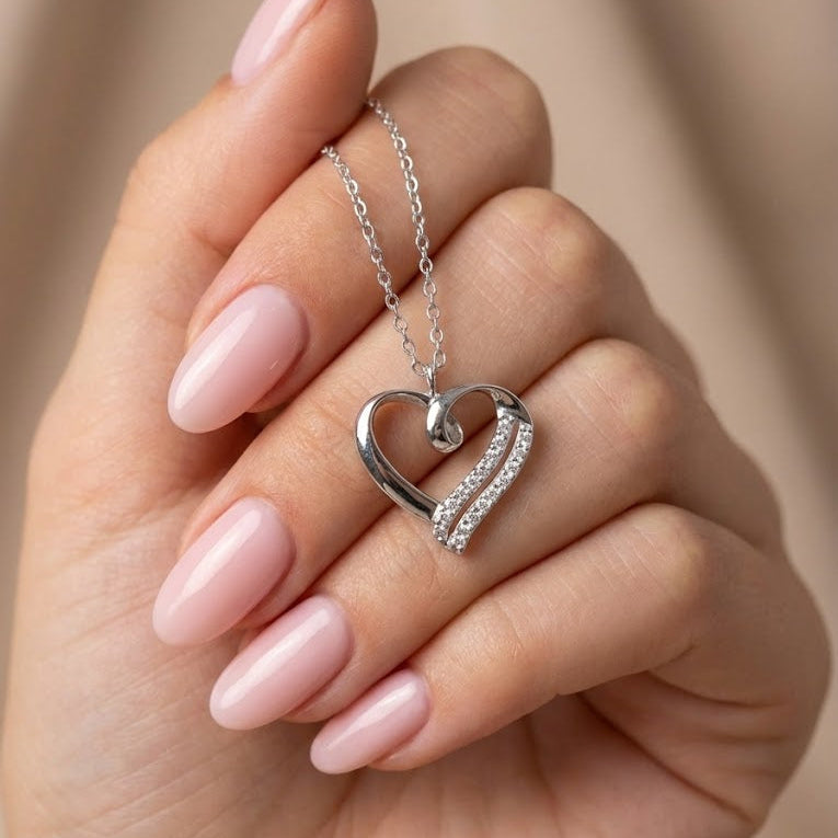 Za romantične duše: Srebrna verižica z motivom prepletenih src.
